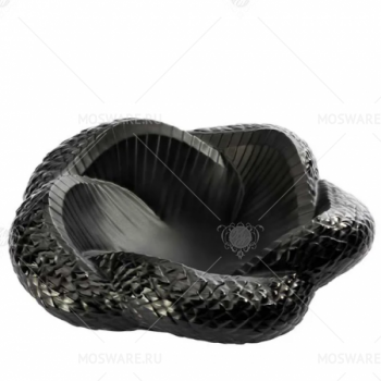 Декоративное блюдо Serpent вдохновлено силой и грацией свернувшейся кольцами змеи. На поверхности непрозрачного угольно-черного хрусталя кропотливо проработаны чешуйки, каждая из которых уникальна. Изделие тщательно отшлифовали вручную, поэтому оно мягко отражает свет.