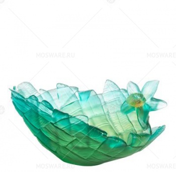 Искусство плетения посуды из свежих листьев и кокосовой койры, распространенное на Мадагаскаре и в Индонезии, вдохновило дизайнеров марки на создание коллекции Tressage. Это блюдо для фруктов выглядит, словно его только что изготовили из свежесорванных растений и украсили цветком ванили. Такого эффекта мастерам бренда, основанного Жаном Домом, удалось добиться благодаря технике «потерянного воска». Она придает хрусталю плавные переходы оттенков и делает материал шелковистым на ощупь.