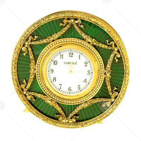 Часы Фаберже, сделанные в Санкт-Петербурге между 1896 и 1908 годами, позолоченные с зеленой эмалью, имеют Швейцарский кварцевый механизм.