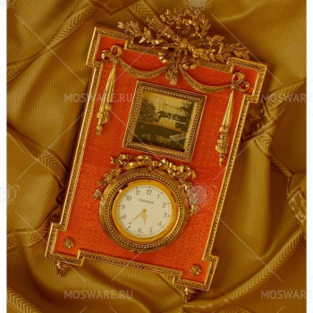 Часы "Екатерина Великая". Металл, позолота, эмаль "гильош", швейцарский механизм. Западная Европа, Фаберже, 1970-1980-е гг.