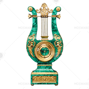 Часы «Лира». Бронза, золочение, малахит.