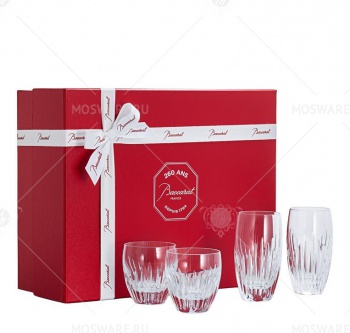 В наборе — четыре хрустальных стакана из коллекции барной посуды Massena. Высокая пара предназначена для подачи сока или воды, а низкая — для виски или коктейлей на основе крепкого спиртного. Выполненные вручную глубокие скошенные грани контрастируют с гладким верхом изделий.