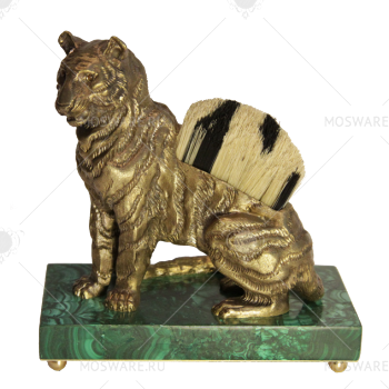 Подставка для карандашей «Тигр». Бронза, патина, малахит.