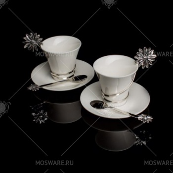 Набор Faberge/Tsar "Margarette" из 2 чаш с блюдцами + 2 ложки.