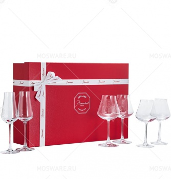 В набор вошли шесть бокалов из коллекции Chatеau: два для шампанского, два для белого вина и два для красного. Хрустальный сет, выпущенный к юбилею мануфактуры, основанной в городе Баккара в 1764 году, упакован в подарочную коробку фирменного оттенка.