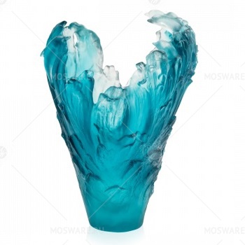 В руках французских мастеров застыл прекрасный, но краткий миг — бурный всплеск морской волны, из которой устремилась в небо стая дельфинов. Запечатлеть мгновение позволила старинная технология pate de verre («тесто из стекла»): спеченная в монолит хрустальная крошка передает сложные полутона и будто бы светится изнутри. Ваза Dolphins из линейки Maya выпущена лимитированным тиражом всего в 175 экземпляров.