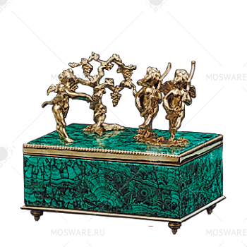 Шкатулка «Парад амуров». Бронза, золочение, малахит.