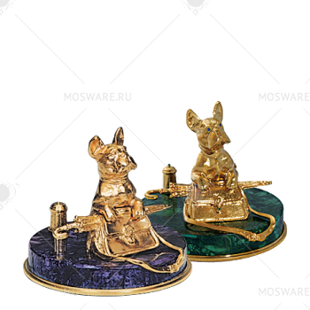 Визитница «Фиделька». Бронза, золочение, чароит, малахит.