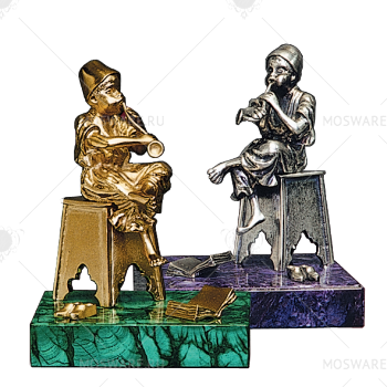 Пресс-папье «Флейтист». Бронза, золочение, малахит; серебрение, чароит.
