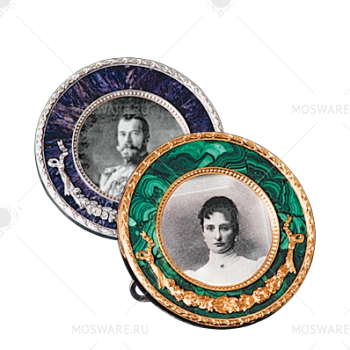 Рамка для фото «Круглая». Бронза, золочение, малахит; серебрение, чароит.