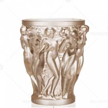 Ваза Bacchantes — легендарное творение Рене Лалика 1927 года, переосмысленное в янтарном хрустале. Барельеф с танцующими вакханками оживает в игре света, переливаясь от медового к оранжевому. Изысканная пластика обнажённых фигур создаёт завораживающий эффект, превращая классический дизайн в современное произведение искусства.