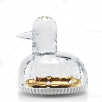 Состоящая из хрустальной крышки в форме утки и фарфорового основания Lladró, шкатулка для драгоценностей, переосмысленная Хайме Хайоном, демонстрирует уникальный и причудливый стиль. С заостренным клювом и изящно вырезанным округлым силуэтом, утка привносит немного фантазии в ваш интерьер. В качестве небольшой гламурной детали, несколько штрихов золота, нанесенных вручную на голову животного, придают ему окончательную подпись.