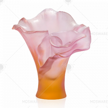 Хрустальная вазочка Arum от французской марки Daum представлена в женственном янтарно-розовом оттенке. Мягкие тона придают изделию еще большее изящество и элегантность. Визитная карточка компании – технология "pate de verre", при которой кусочки цветного стекла и хрусталя запекаются внутри огнеупорной формы, точно повторяя ее очертания. Это дает удивительную текстуру и позволяет добиваться сложных и всегда разных переходов цвета. Хрусталь получается плотным, не до конца прозрачным, тяжелым, похожим скорее на камень – яркий и светящийся изнутри.